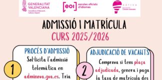 L’Escola Oficial d’Idiomes de Xàtiva ha iniciat el període d’admissió per al curs 2025-2026. Des del 18 de juny a les 12.00 h i...