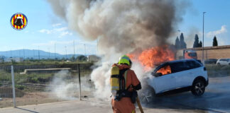 Els bombers de Xàtiva actuen en l’incendi d’un vehicle prop d’una gasolinera