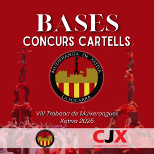 La Muixeranga de Xàtiva i el Consell de la Joventut de Xàtiva (CJX) han posat en marxa el concurs de cartells que servirà per a seleccionar la imatge anunciadora de la VIII Trobada de Muixerangues a Xàtiva, prevista per al 20 de juny de 2026 a la plaça de Sant Francesc.