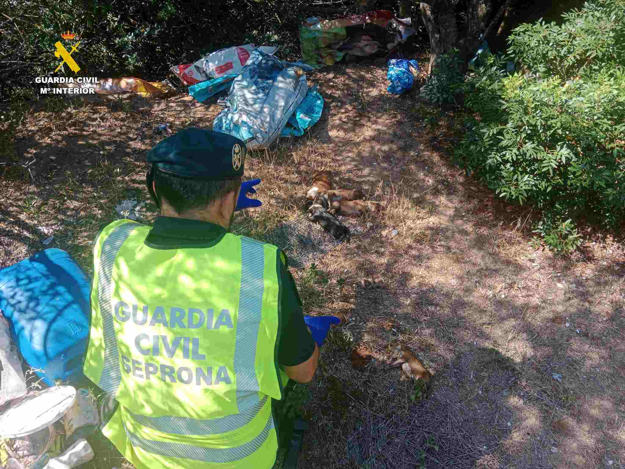 Els fets es van produir mentre agents del SEPRONA de Navarrés feien tasques de vigilància forestal i prevenció d’incendis. Un veí va alertar la patrulla en sentir aulls que provenien d’una zona amb difícil accés. Els agents van descobrir la bossa tancada amb els cadells a l’interior, dels quals cinc ja estaven morts per deshidratació i cop de calor.