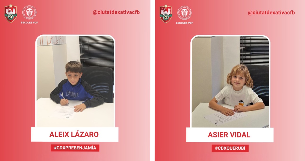 Els protagonistes del salt esportiu són Aleix Lázaro Català, jugador del Prebenjamí A, i Asier Vidal Pedregal, del Querubí, que des d’aquesta mateixa setmana passen a formar part del Valencia CF. En el cas d’Aleix, el seu recorregut és especialment simbòlic, ja que forma part de la Ciutat de Xàtiva CFB des dels quatre anys, un exemple del treball de base i de continuïtat que es desenvolupa a l’escola.