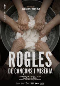 El Gran Teatre de Xàtiva acollirà aquest dissabte, 31 de maig, a les 19.30 hores, l’estrena de l’obra «Rogles de cançons i misèria», de la companyia Cactus Teatre, amb text i direcció de Paula Llorens i Isabel Martí.