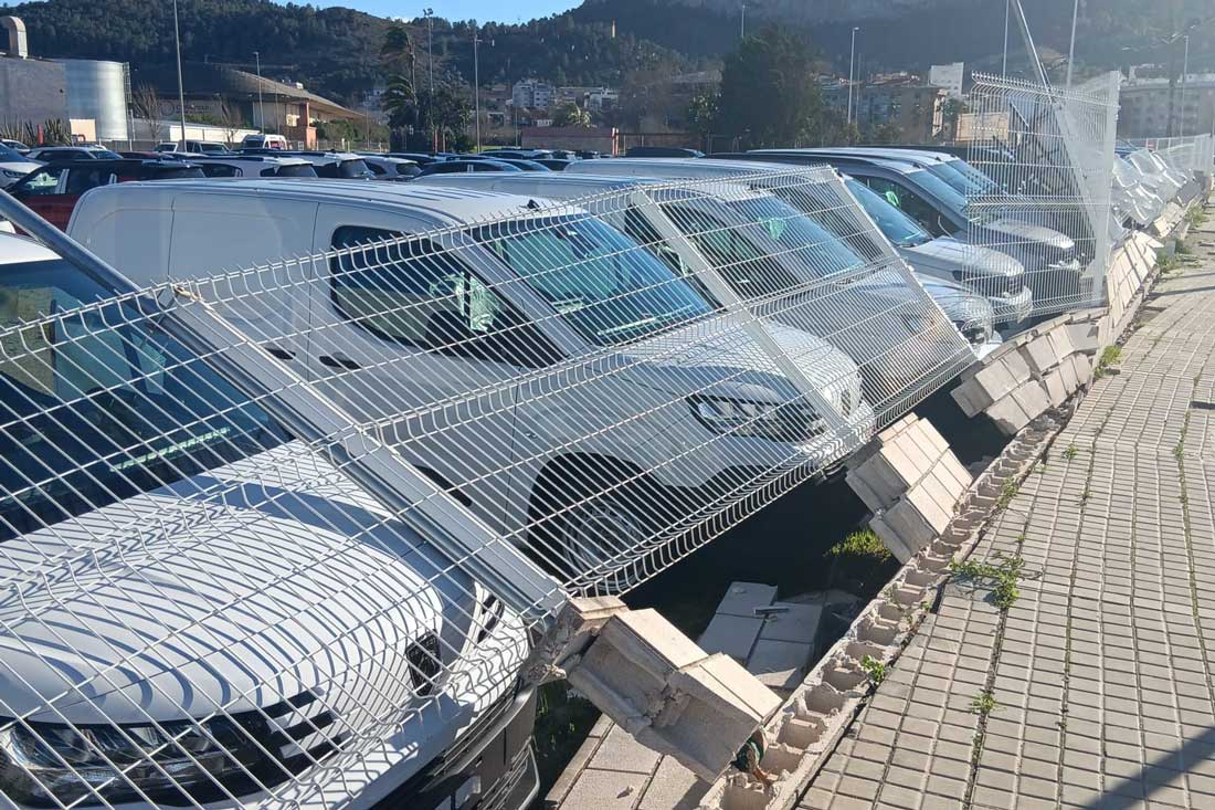 Al nucli urbà s’han notificat despreniments de cornises —com ara al carrer Montcada i a la Casa de la Joventut—, així com trencaments de vidres i persianes. També s’han registrat danys materials en elements d’establiments i al polígon industrial, amb caiguda de rètols i d’una tanca perimetral que ha acabat sobre vehicles aparcats.