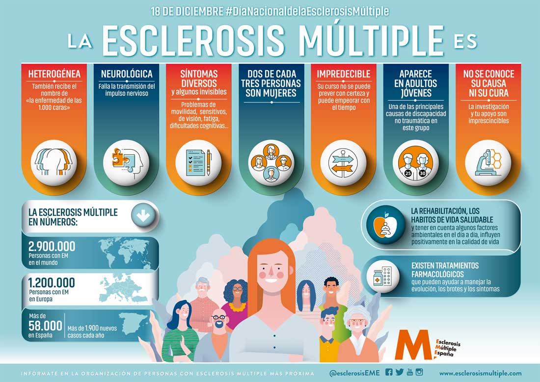 Es tracta d’una de les principals causes de discapacitat no traumàtica en persones joves, amb un inici habitual entre els 20 i els 40 anys, i amb una clara major incidència en dones, que representen el 68 % dels casos. A més, el 35 % de les persones amb EM no rep cap tipus de tractament rehabilitador.