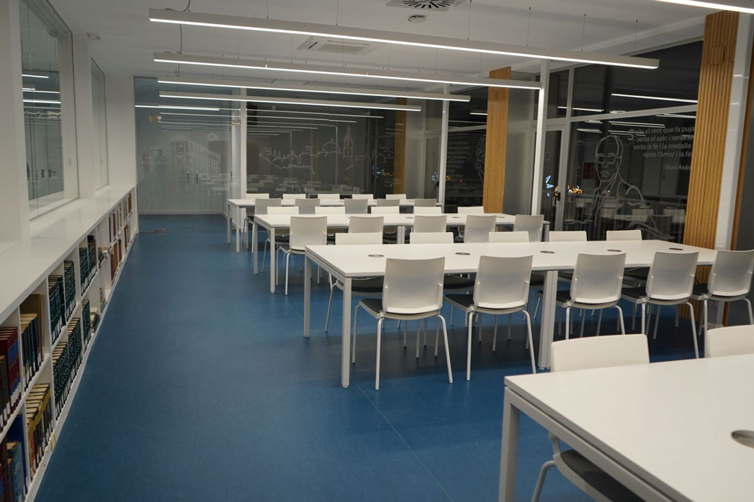 Les noves dependències es van habilitar en un espai ampli i confortable, amb mobiliari funcional i connexions per a dispositius tecnològics, pensades per a facilitar la lectura, l’estudi i el treball col·laboratiu. En total, s’han creat tres sales diferenciades: una adreçada al públic jove d’entre 12 i 16 anys, amb possibilitat d’ús com a sala multiús per a activitats d’animació lectora; una segona destinada a lectura i estudi, amb taules allargades i prestatgeries; i una tercera, de dimensions més reduïdes, concebuda per a reunions i treball en equip.
