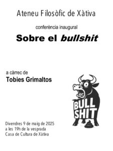 La conferència inaugural de l’Ateneu serà a càrrec del professor Tobies Grimaltos (UV), i tindrà com a tema «Sobre el bullshit», una proposta de reflexió sobre la rellevància de la filosofia en l’actualitat. Aquest esdeveniment marca l’inici de les activitats de l’Ateneu, que pretén ser un espai de debat i aprenentatge sobre temes filosòfics, culturals i socials.