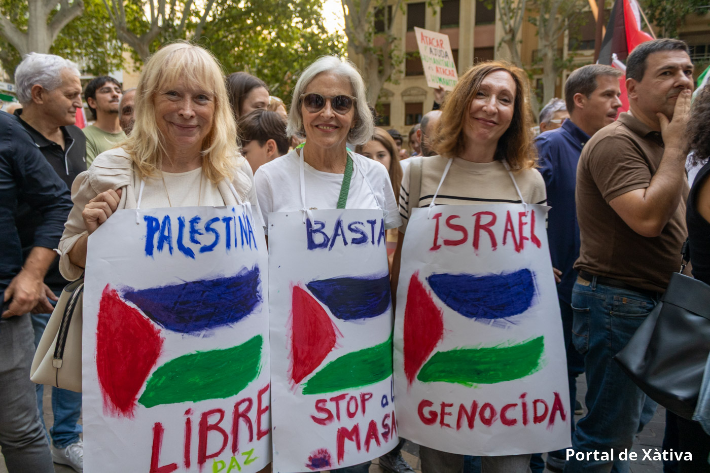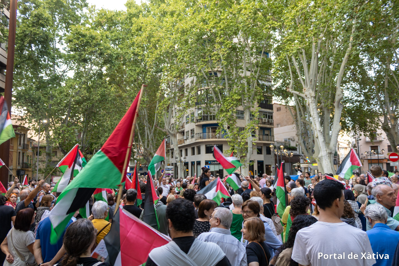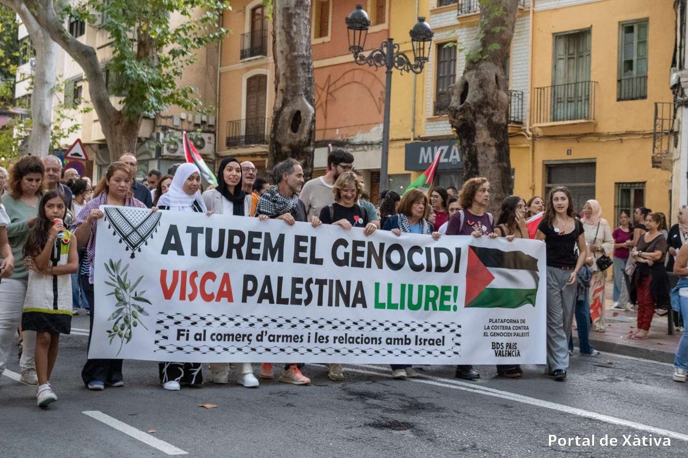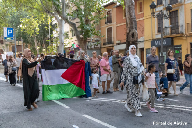 Xàtiva va viure el passat divendres una multitudinària manifestació en suport al poble palestí, amb la participació de prop de 2.000 persones (segons els organitzadors) que van omplir els carrers del centre de la ciutat amb banderes, pancartes i missatges de solidaritat. La concentració, convocada pel moviment BDS La Costera, va arrancar a la plaça de la Bassa i va recórrer diversos carrers en un ambient reivindicatiu i pacífic.