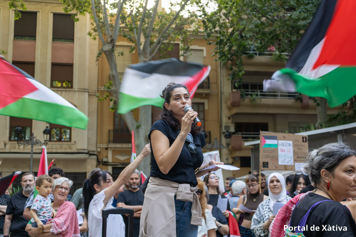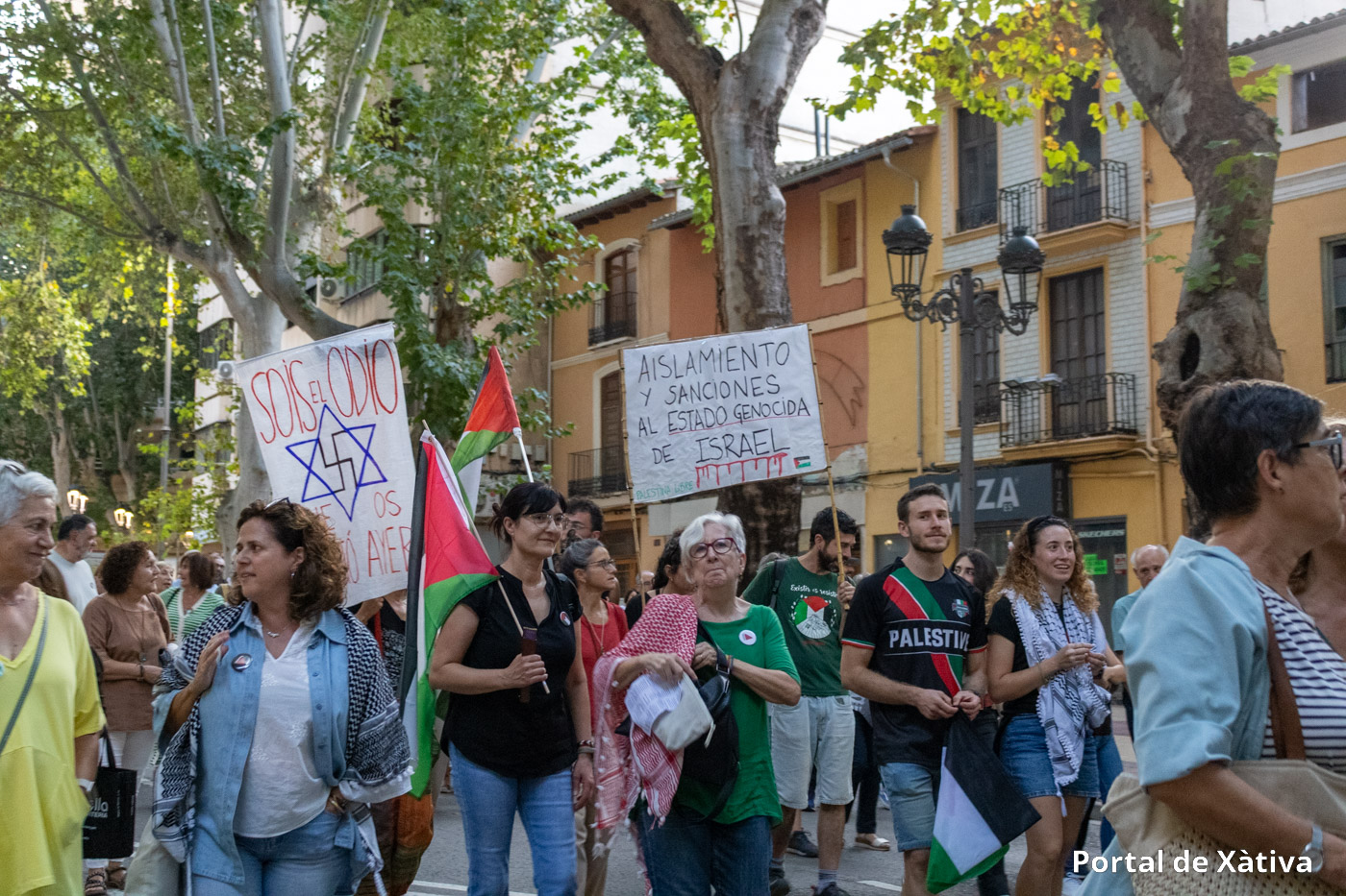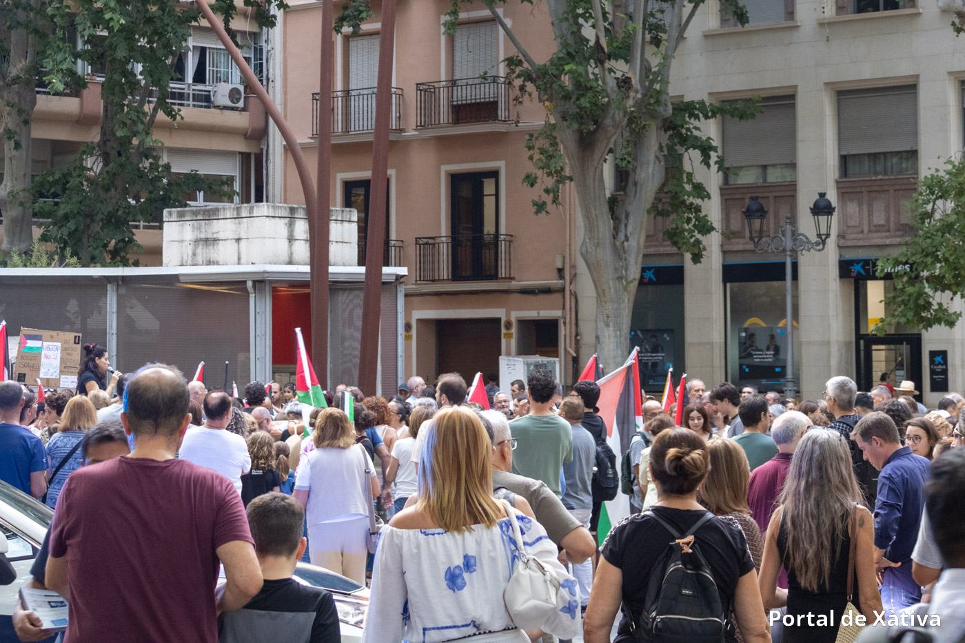 Xàtiva va viure el passat divendres una multitudinària manifestació en suport al poble palestí, amb la participació de prop de 2.000 persones (segons els organitzadors) que van omplir els carrers del centre de la ciutat amb banderes, pancartes i missatges de solidaritat. La concentració, convocada pel moviment BDS La Costera, va arrancar a la plaça de la Bassa i va recórrer diversos carrers en un ambient reivindicatiu i pacífic.