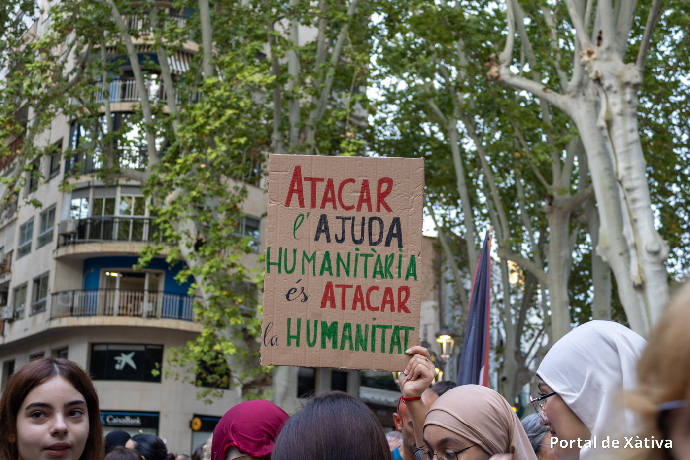 En la mateixa línia, l’Ajuntament de Xàtiva va penjar dues pancartes amb el lema “Xàtiva amb Palestina, aturem el genocidi”, una al balcó de la Casa de la Ciutat i una altra a la Casa de les Dones, com a gest institucional de suport i per a reclamar la fi de la massacre i la defensa dels drets humans del poble palestí.