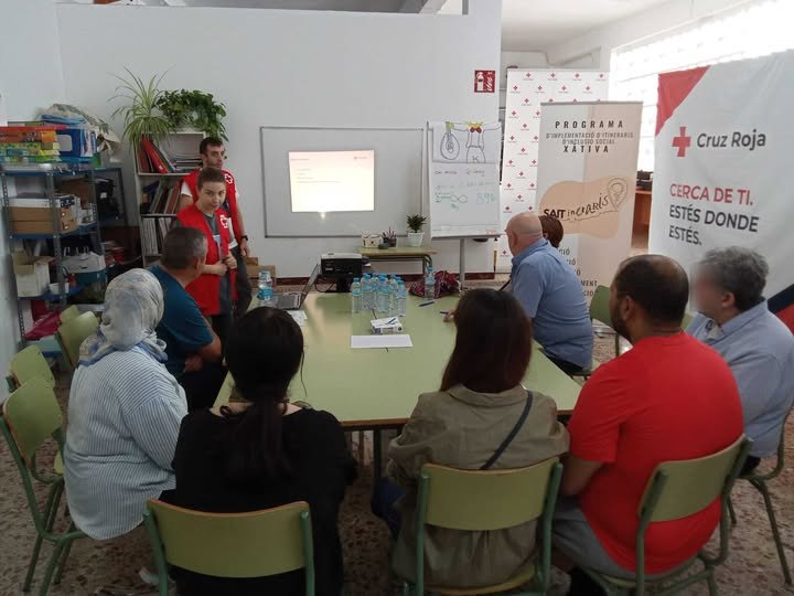 Participants del programa SAItineraris de Xàtiva, dins del Programa Fons Social Europeu Plus (FSE+) Comunitat Valenciana 2021-2027, van assistir dijous passat a una xarrada sobre economia domèstica impartida per Creu Roja a la seua seu de Xàtiva. Aquesta activitat, organitzada per la regidoria de Benestar Social de l’Ajuntament de Xàtiva, té com a objectiu acompanyar les persones amb especials dificultats en el procés d’integració sociolaboral.