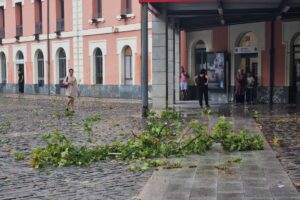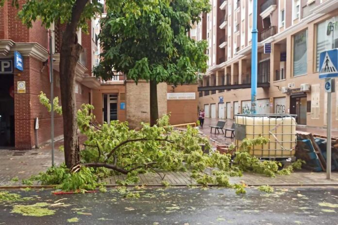 A més de la pluja, les fortes ratxes de vent —que han superat puntualment els 100 km/h— han provocat la caiguda de rames en diversos punts de la ciutat. Els serveis municipals estan treballant en la seua retirada per tal de restablir la normalitat i garantir la seguretat.
