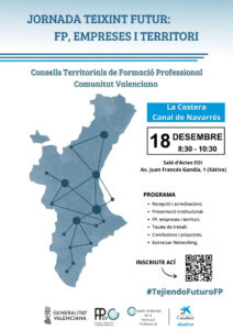 L’Escola Oficial d’Idiomes de Xàtiva acollirà el pròxim 18 de desembre de 2025 la jornada “Teixint futur: FP, empreses i territori”, una trobada prevista per a reunir prop de mig centenar de professionals vinculats a l’educació, l’empresa i el desenvolupament local. La iniciativa forma part de les 20 accions coordinades pels Consells Territorials d’FP de la Comunitat Valenciana, en col·laboració amb CaixaBank Dualiza i la Direcció General de Formació Professional.