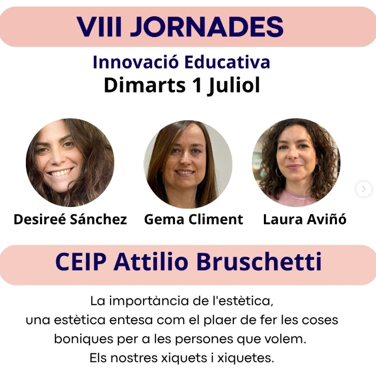 El pròxim dimarts 1 de juliol, el CEIP Attilio Bruschetti acollirà les VIII Jornades d’Innovació Educativa, una cita ineludible per a professionals de l’educació infantil i primària. Durant la jornada, destacades ponents com Desireé Sánchez, Gema Climent i Laura Aviñó compartiran la seua experiència i coneixements sobre les últimes tendències en metodologies i espais educatius.