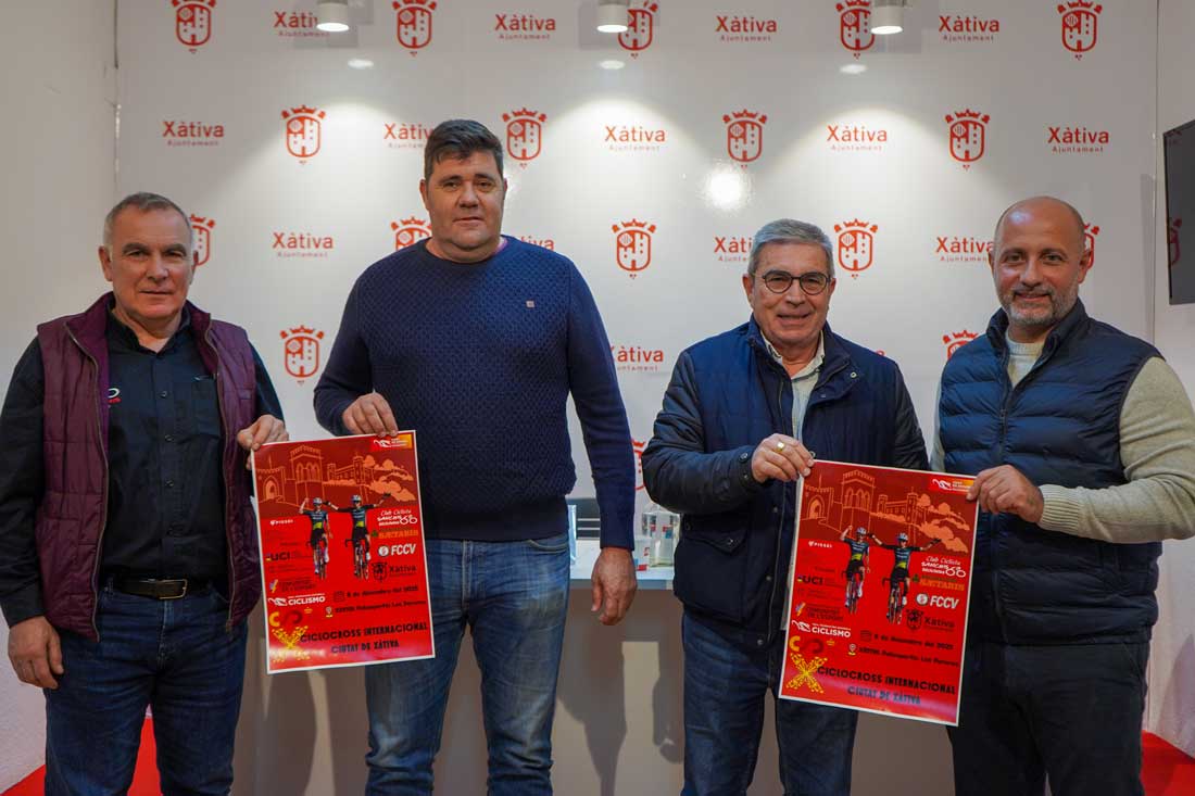 Xàtiva celebrarà aquest dissabte 6 de desembre la desena edició del Ciclocross Internacional Ciutat de Xàtiva, una cita plenament consolidada en el calendari estatal i internacional. L’esdeveniment, que tindrà lloc al Poliesportiu Les Pereres, s’ha presentat aquest matí amb la participació del regidor d’Esports, Vicent Lluch; el president de la Federació de Ciclisme de la Comunitat Valenciana, Kike Gutiérrez; el president del Club Ciclista Bicicletas Sanchis, Salvador Sanchis, i el director tècnic de la prova, Miguel Ángel Ortega.