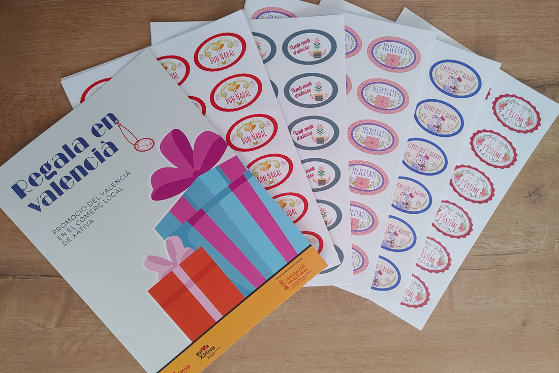 L’Ajuntament de Xàtiva ha activat la quarta edició de la campanya “Regala en valencià”, una acció que consolida la voluntat municipal d’incrementar la presència del valencià en l’activitat comercial quotidiana. La iniciativa, ja plenament integrada en la campanya nadalenca, consisteix en el repartiment de carpetes amb etiquetes adhesives perquè els establiments puguen incorporar expressions en valencià en els seus embolcalls de regals.