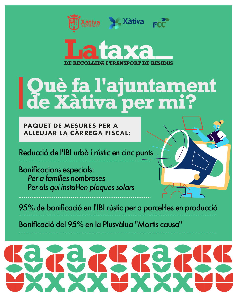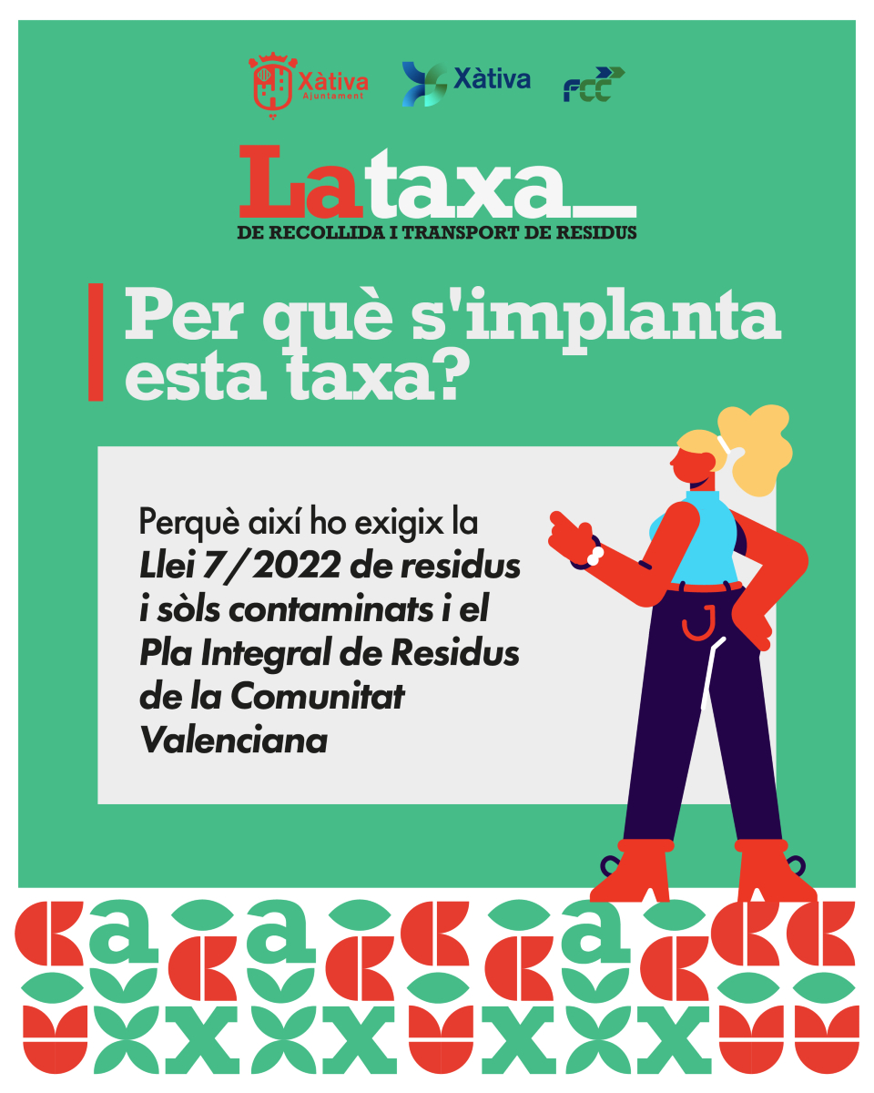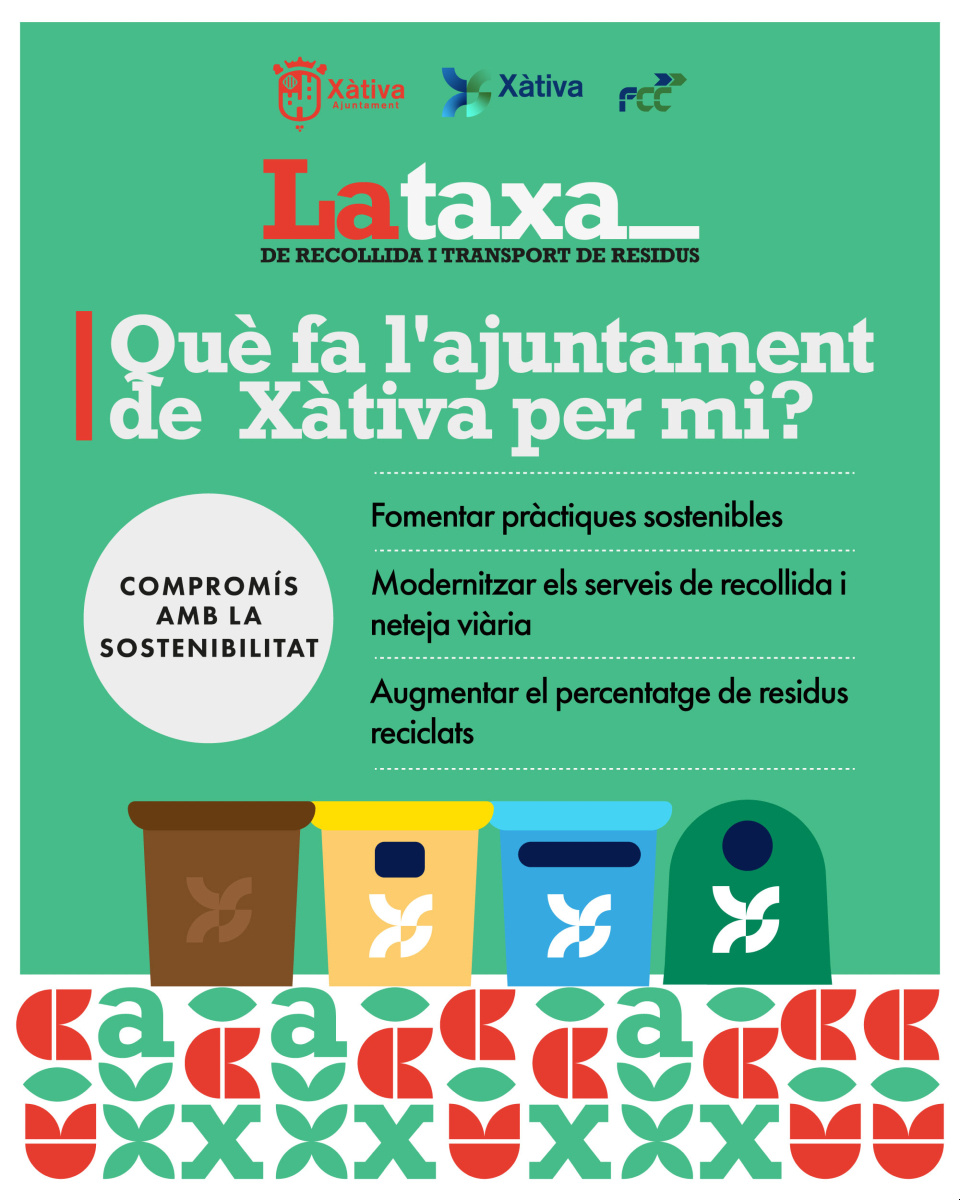 L’Ajuntament de Xàtiva ha informat recentment sobre la implantació de la nova taxa municipal obligatòria de recollida i transport de residus, una mesura que dona compliment a la Llei 7/2022 de residus i sòls contaminats per a una economia circular i al Pla Integral de Residus de la Comunitat Valenciana.