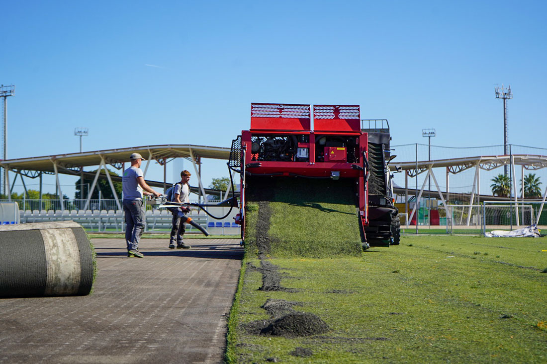 Entre les actuacions previstes s’inclouen el desmuntatge i recol·locació del mobiliari esportiu existent, la retirada i gestió dels residus de la gespa actual, l’anivellament de les zones deteriorades del ferm i la instal·lació d’una nova gespa artificial que complirà amb els estàndards FIFA QUALITY i FIFA QUALITY PRO. També es durà a terme el subministrament del nou material de farciment i el marcatge de línies segons la normativa vigent.